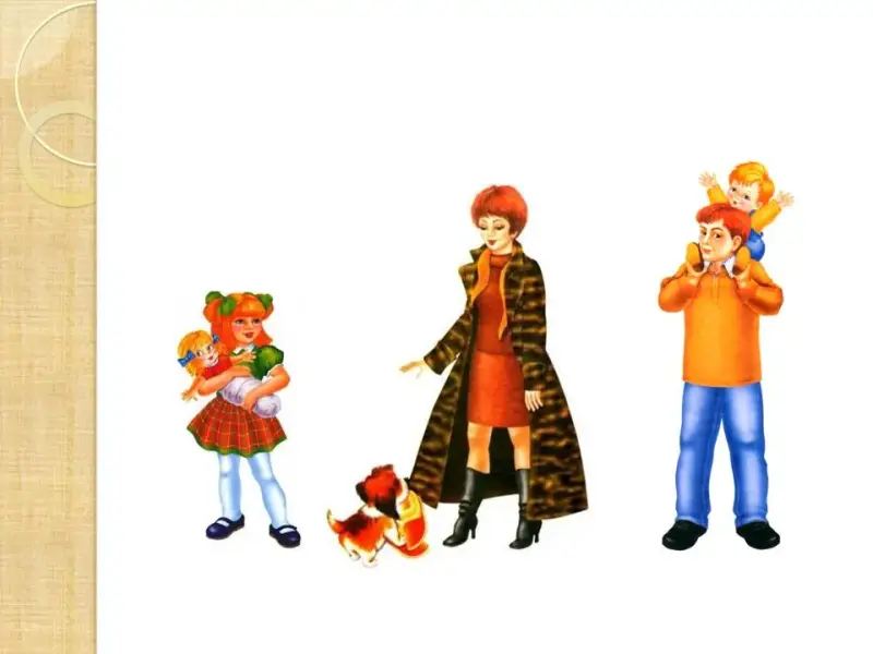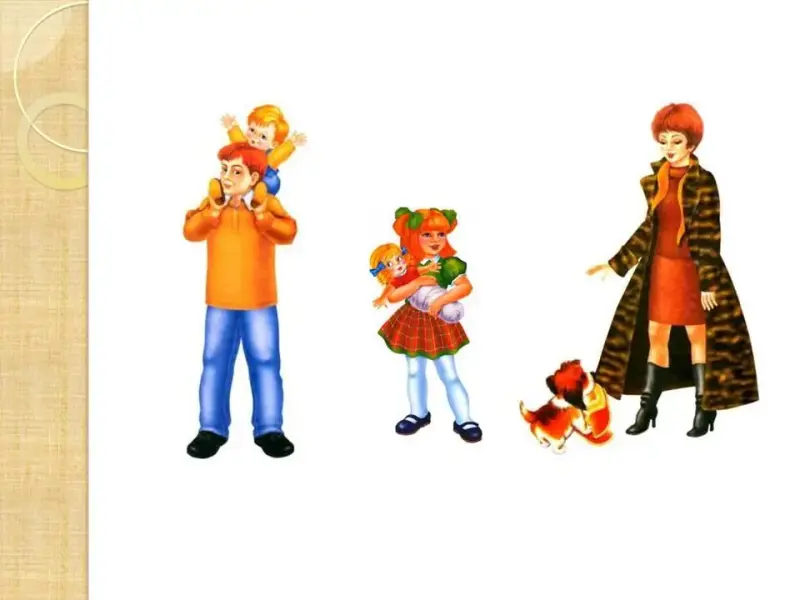 - Посмотрите и расскажите, как зовут маму? (Эмма.) Папу? (Эрик.) Братика? (Эдик.) Сестру? (Эля.)