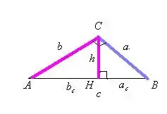 Высота прямоугольного треугольника, проведенная из вершины прямого угла есть среднее пропорциональное м/у…(-… отрезками, на которые делится гипотенуза этой высотой)