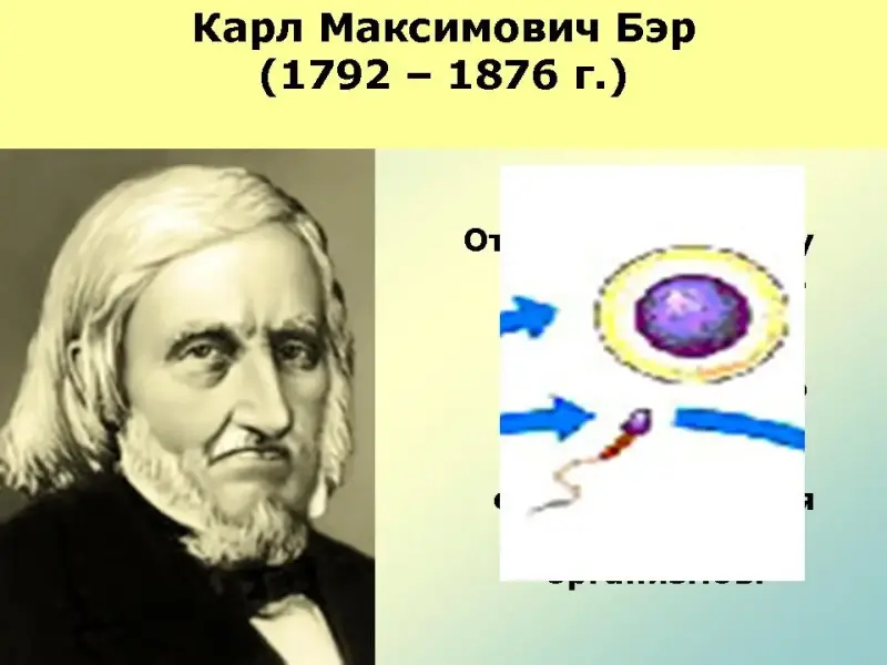 1827 год. Открыл яйцеклетку млекопитающих. Сформулировал положение, что клетка не только единица строения, но и единица развития живых организмов. |
