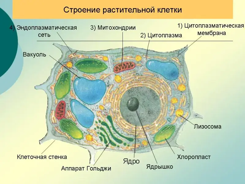 | 23 | Строение растительной клетки. | Цитоплазматическая мембрана, цитоплазма, митохондрии, ЭПС, вакуоль, клеточная стенка, аппарат Гольджи, ядро, ядрышко, хлоропласт, лизосомы. |