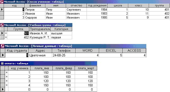 Прежде всего, воспользовавшись ею, можно выяснить много полезной информации об обучающихся в компьютерной школе, а именно: из каких школ города ученики посещают курсы, какие курсы пользуются большей популярностью, где проживают учащиеся (адреса). Кроме того, можно оперативно получить информацию об успеваемости учащихся разных профилей, разных классов. Ну и, наконец, с помощью данной базы можно своевременно информировать учащихся о задолженности в оплате курсов.