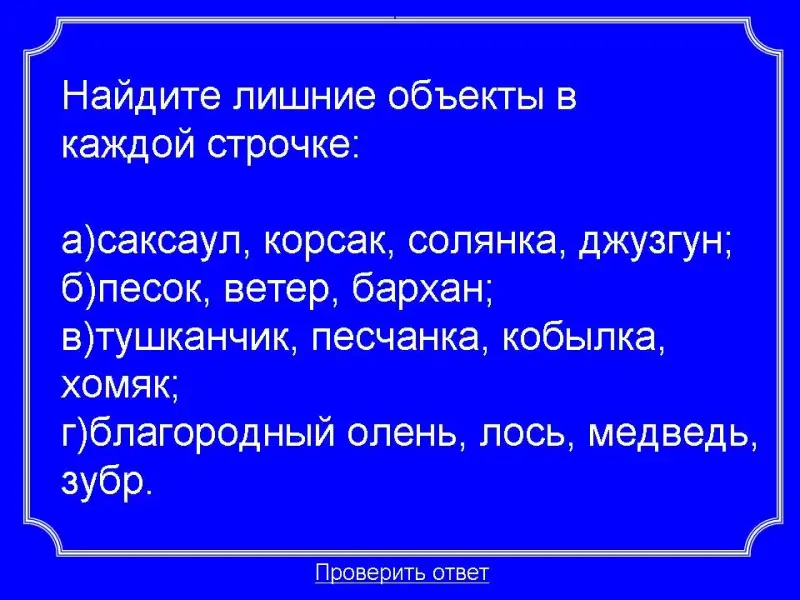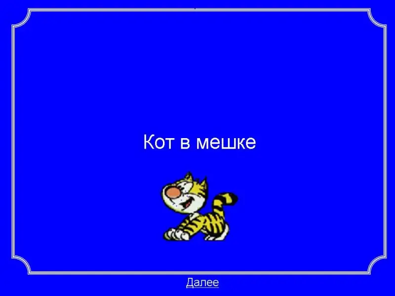 Все вопросы поделены на 6 блоков, каждый блок содержит 5 вопросов. В игре есть вопрос "Кот в мешке", если он выпадает, то команда выбирает одного ученика, который без подсказки и без обсуждения дает ответ. Если ученик отвечает правильно, то команда получает удвоенное количество баллов, если неправильно - команда теряет то количество баллов, которое стоит данный вопрос.
