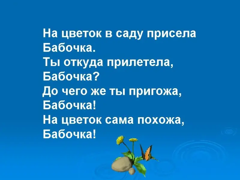 - Сколько крыльев у бабочки? (Четыре, два большие крыла впереди и два поменьше сзади)