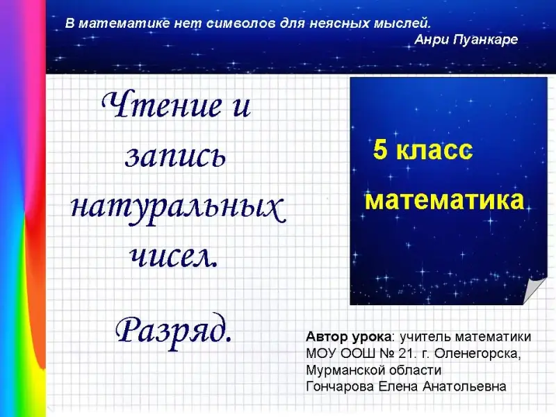 Чтение и запись натуральных чисел. Разряд