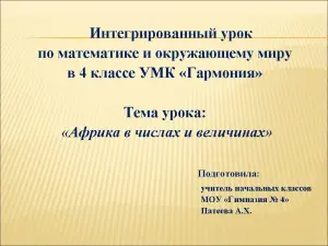 ИНтегрированный урок (математика + окружающий мир) "Африка в числах и величинах"