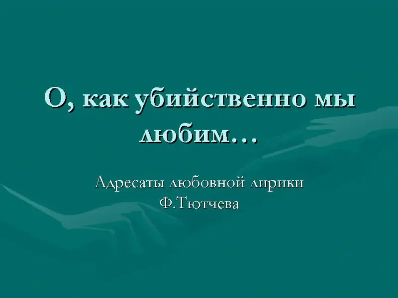 Эпиграфом к уроку являются слова: «Как убийственно мы любим». Действительно, любовь для Тютчева - это убийство, это самоотдача, жертвенность души.