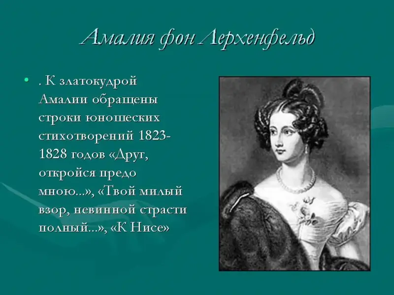 Вскоре после приезда в столицу Баварии Тютчев влюбился в совсем ещё юную (14 лет) графиню Амалию фон Лерхенфельд.