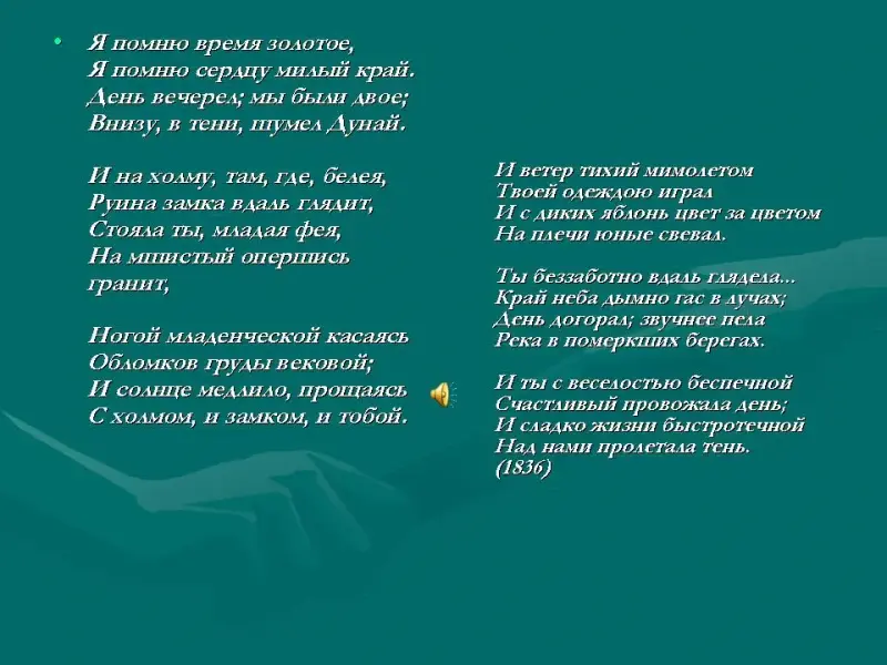 (Слайд № 12) Подготовленный ученик читает стихотворение.