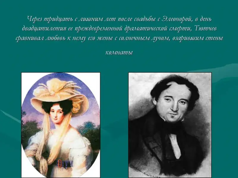 - Чем была для Тютчева любовь его первой жены? (Лучом солнца, благодатью, чем-то возвышенным и светлым.)