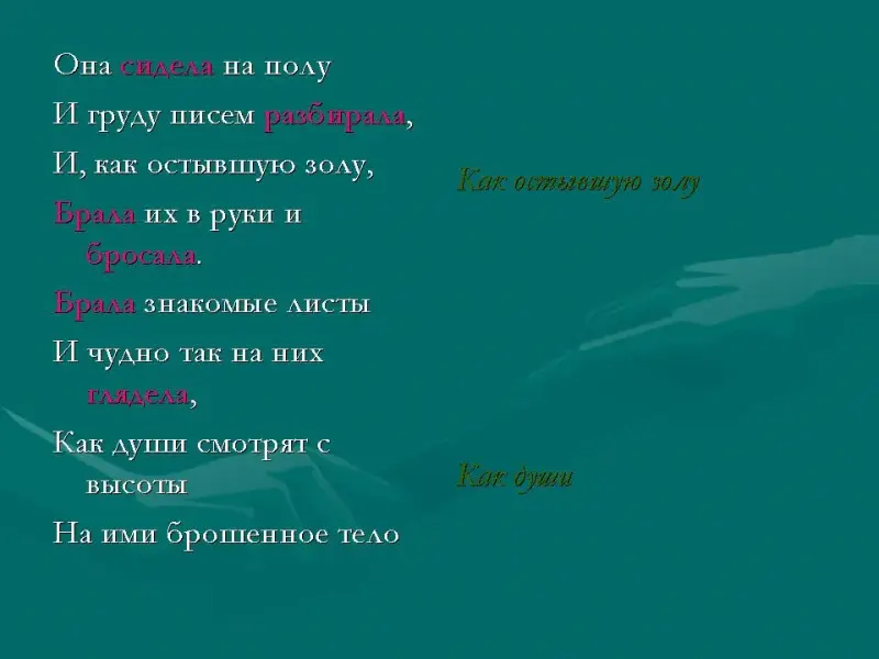 В презентации также выделены изобразительные средства, на которые нужно обратить внимание.