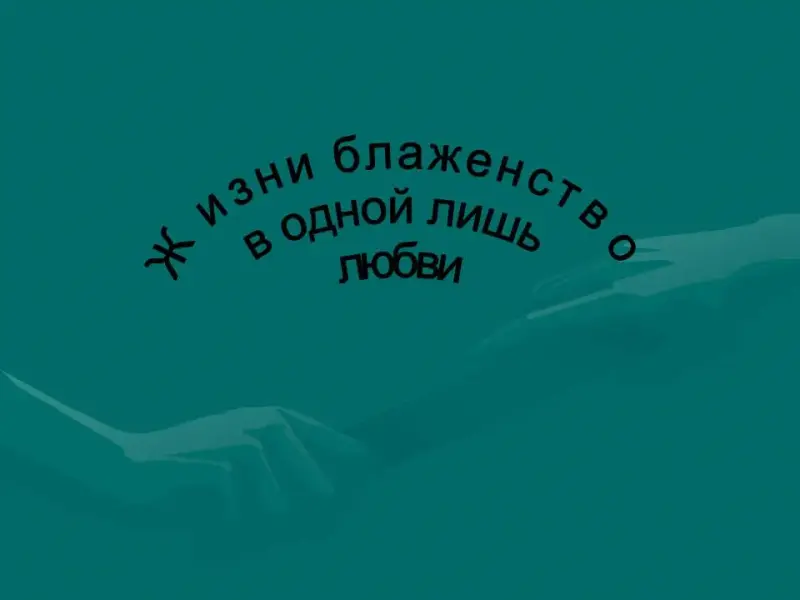 Урок я хочу закончить словами Ф.Тютчева (слайд №23): «Жизни блаженство в одной лишь любви». В момент написания этих строк поэту было 67 лет. И эта фраза в устах человека, много пережившего, познавшего «радость и горе в живом упоенье», звучит как откровение. «Жизни блаженство в одной лишь любви...»