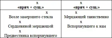 По мере того, как называются словосочетания, заполняется ещё одна таблица.