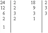 24 = 23 × 3, 18 = 2 × 32.