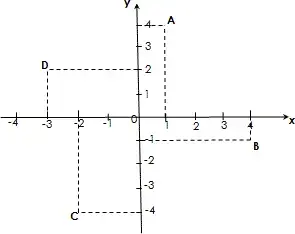 - В каких координатных четвертях расположены такие точки: А(-2;6), В(4;-1), С(-3;-4), D(1;7), Е(6;-7), F(-5;-2), G(-8;1).
