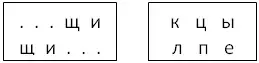 - Из разрезной азбуки достаньте два слога ЩИ. Первый поставьте на верхнюю полоску, второй - на нижнюю.
