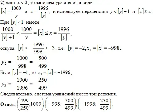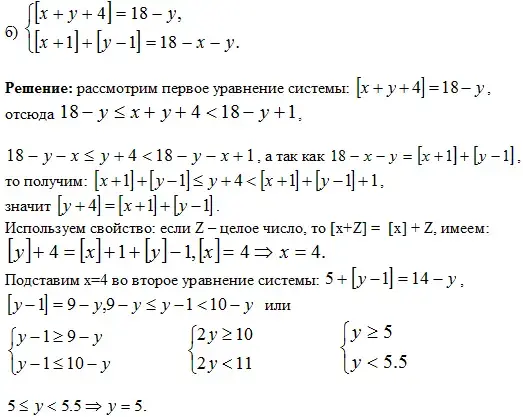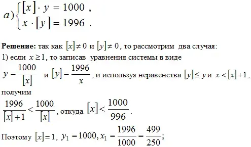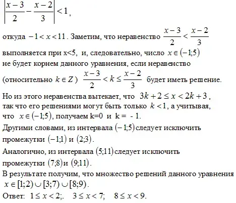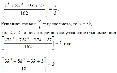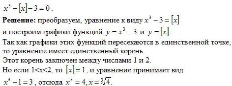 Решение: если два числа имеют одинаковую целую часть, то их разность по абсолютной величине меньше 1, и поэтому из данного уравнения следует неравенство