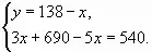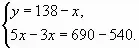 - "Купец купил 138 арш. черного и синего сукна за 540 руб. Спрашивается, сколько аршин купил он того и другого, если синее стоило 5 руб. за аршин, а черное - 3 руб.?"