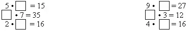 3 • 5; 3 • 2, 3 • 8, 3 • 4, 3 • 6, 3 • 7, 3 • 3, 3 • 9.
