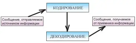 Процесс кодирования и декодирования является взаимообратной операцией. В схеме передачи информации должен присутствовать блок, отвечающий за кодирование передаваемого сообщения и за его декодирование для получателя. В этом случае схема коммуникации выглядит так: