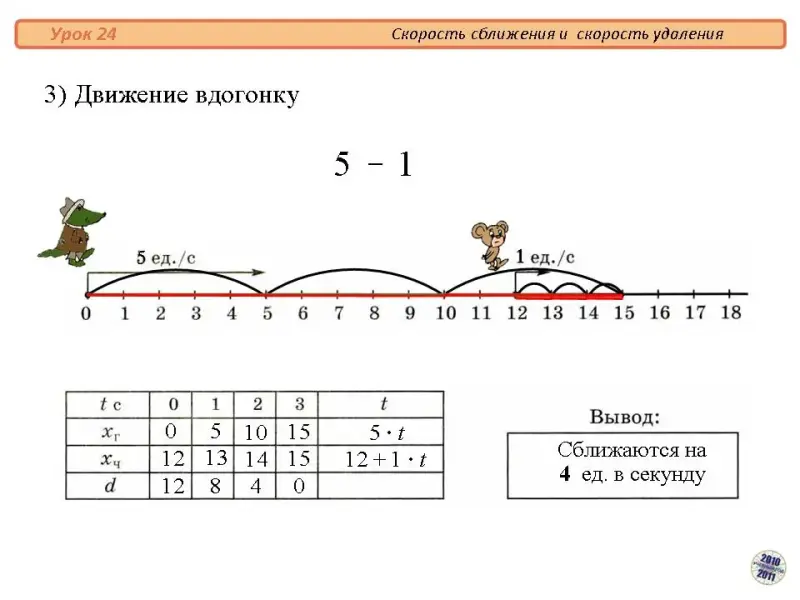 Переход на Слайд 5 "3) Движение вдогонку".