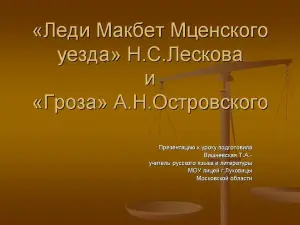 – Вы прочитали произведение Н.С.Лескова “Леди Макбет Мценского уезда”. Ваши впечатления?