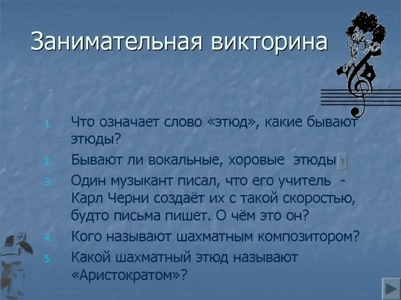 - Назовите композиторов, чьи этюды вы играете на занятиях фортепиано.