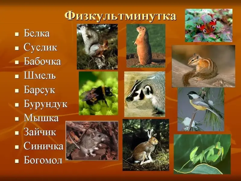Если пришёл гость в слове которого есть звук { б} или { б"}, то мы ему вместе с Белоснежкой делаем низкий поклон. Если в слове нет звуков { б } или { б "} мы приседаем. (Белка, суслик, бабочка, шмель, барсук, бурундук, мышка, зайчик, синичка, богомол). (слайд 16)