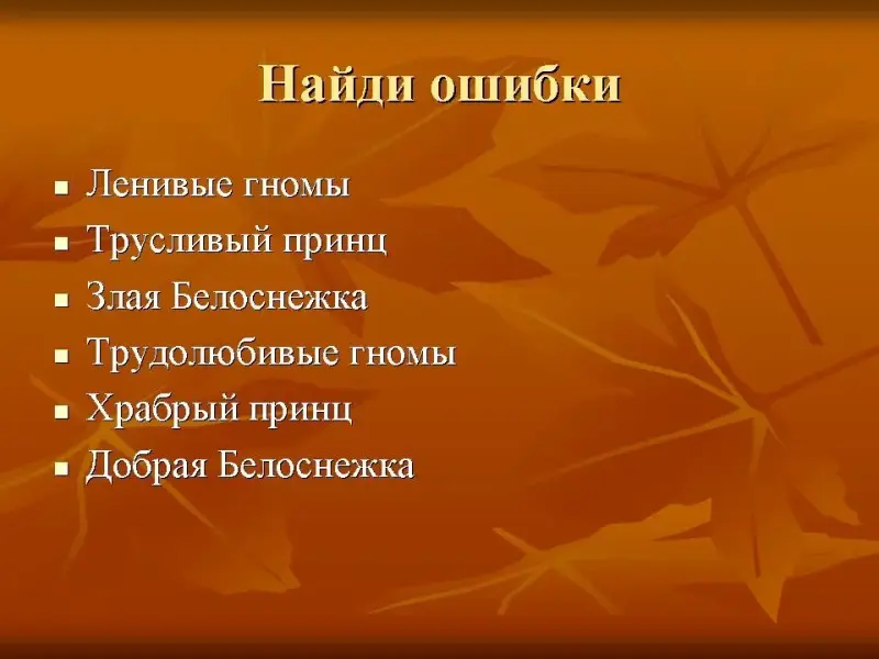 - Какое украшение носила Белоснежка на голове? (Бант) (слайд 11)
