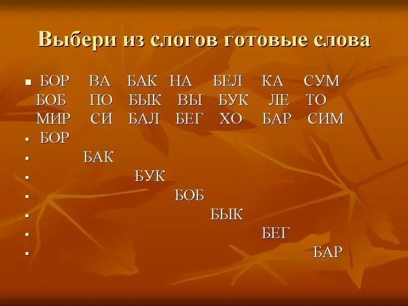 - Выберите из слогов готовые слова и прочитайте.(слайд 24)