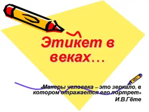 Ведущий: Вот и прекрасно. И я с удовольствием приглашаю вас всех, дорогие друзья, принять участие в нашей викторине "Этикет в веках".