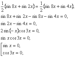 3 ученик. 3 способ. Решение уравнений преобразованием произведения тригонометрических функций в сумму