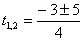 2 t2 + t - 3 = 0..Решив уравнение, получим