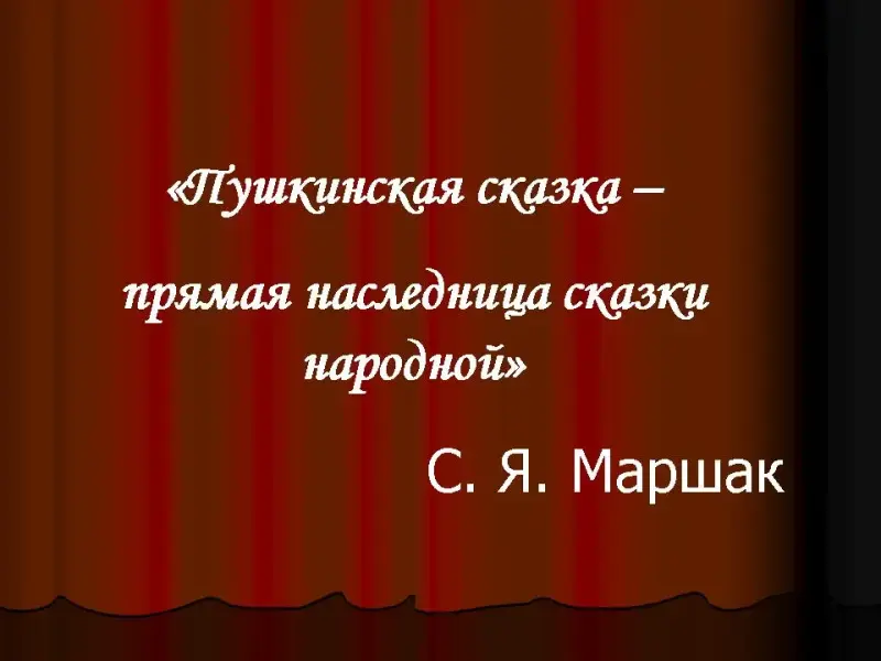 - на основе сравнительного анализа выявить особенности фольклорной и литературной сказок, доказать, что «пушкинская сказка- прямая наследница сказки народной»;