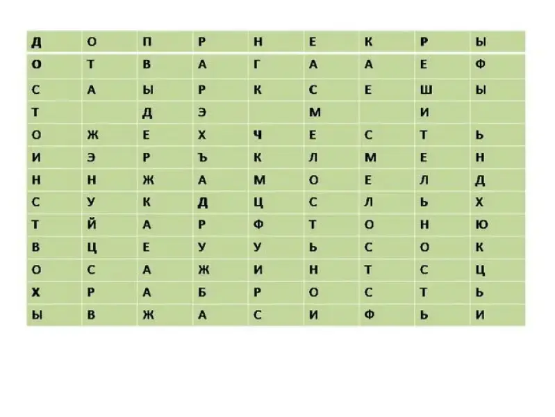 Почему был вызван Андрей Соколов к коменданту? Как он вел себя в разговоре с фашистом? Было ли опасным такое поведение? Кто выиграл в этом противостоянии: лагерфюрер или Андрей Соколов? Какие черты характера Андрея помогли ему выстоять и вызвать уважение даже у врагов? Можем ли мы в этом случае говорить о мужестве? Как вы понимаете значение слова мужество? Давайте найдем это слово в толковом словаре и прочитаем его значение. Задание носит индивидуально-дифференцированный характер: кто-то выполняет задание самостоятельно, кому-то называет страницу учитель, у более слабых - есть закладки в словарях. Таким образом, мы с вами узнали, что мужество проявляется по-разному. Оно не только в героическом поступке, но и в стойкости духа. Давайте подумаем, как мы можем передать интонацией при чтении разговора выдержку Андрея Соколова и наглость и самоуверенность лагерфюрера. Предлагает прочитать отрывок по ролям по желанию, остальным послушать и проанализировать чтение. Найти на слайде 8 (Презентация 1.ppt) среди букв слова, раскрывающие черты характера Андрея Соколова. |