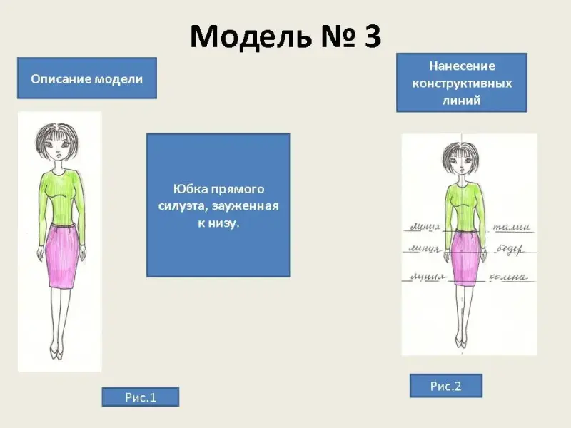 - Рисунок 1. Описание модели: юбка прямого силуэта, зауженная по линии низа.