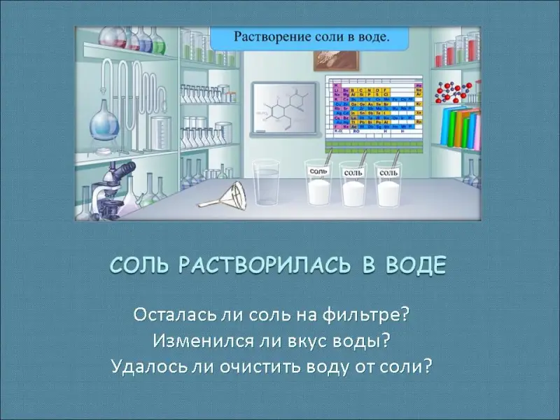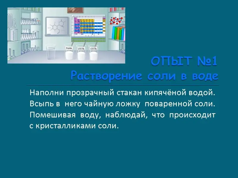 1) П. Проведите опыт с поваренной солью. Проверьте, растворяется ли в воде поваренная соль.