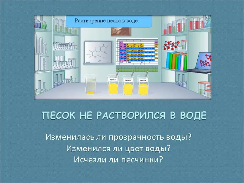 Исчезли ли песчинки? (Более тяжелые песчинки опускаются на дно, а мелкие плавают в воде, делая ее мутной)