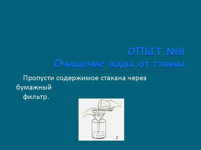 У. Прочитайте вслух порядок действий при выполнении опыта с фильтром. (Слайд 8)