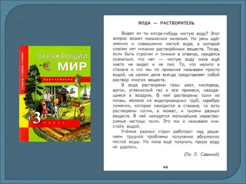 У. Советую членам клуба прочитать рассказ в хрестоматии «Вода - растворитель» (с.46). (Слайд 26)