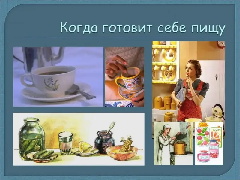 чай, варит компот, супы, солит и консервирует овощи, заготавливает варенье.