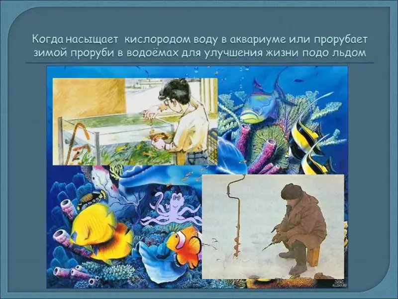 водоемы были бы безжизненными. Зная это, люди не забывают насыщать кислородом воду в аквариуме, где живут рыбки, или прорубают зимой проруби в водоемах для улучшения жизни подо льдом.