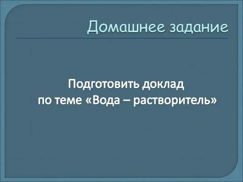 (Слайд 35) Составить по плану доклад для выступления по теме «Вода - растворитель». Лучшие исследовательские работы по этой теме будут отправлены в научный клуб.