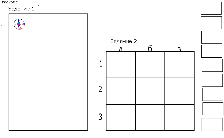 - Те, кто закончил построение плана, выполняют задание 2. В указанном квадрате создать по описанию фрагмент плана местности с использованием сочетания топографических знаков, с учётом направлений по сторонам горизонта (см. Приложение 2).