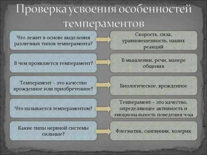 Проверка усвоения особенностей темпераментов: