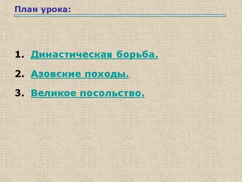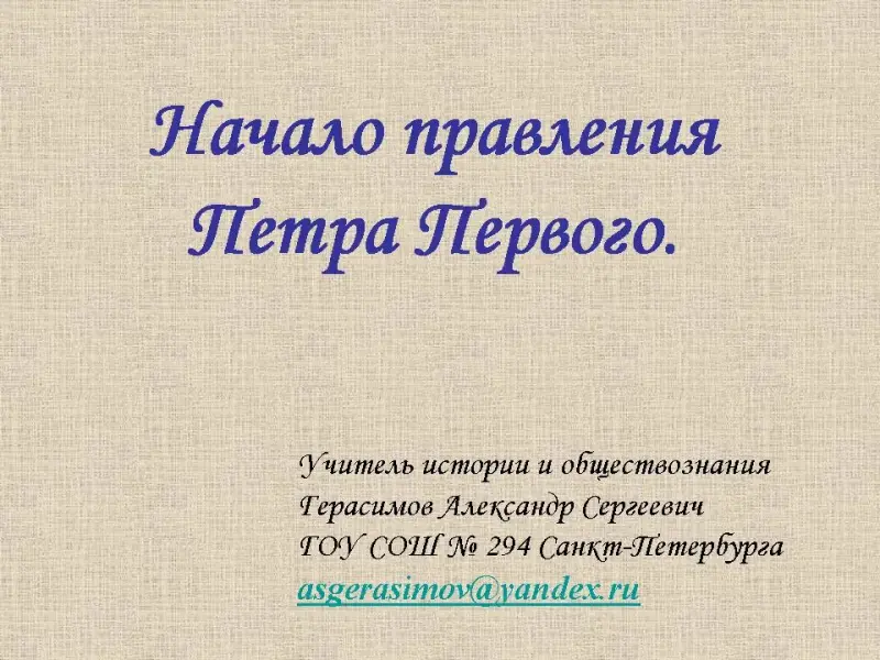 «Действительно так, и человеком, который смог осуществить те преобразования, о которых его предшественники могли только мечтать, стал Петр Первый. Сегодня мы с вами узнаем о важнейших событиях последних десятилетий 17 века, о первых самостоятельных шагах царя Петра - правителя России». Слова учителя сопровождаются презентацией. Слайды № 1, 2.