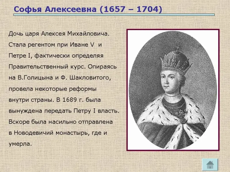 Несколько учащихся предварительно получили опережающее домашнее задание подготовить сообщения об Иване и Софьи. Слайды № 4, 5.