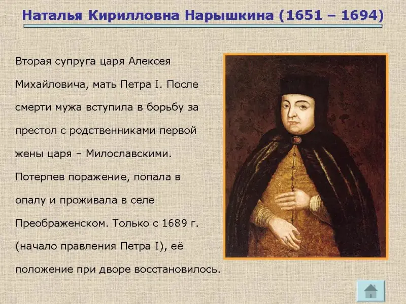 Пётр не стал заниматься государственными делами, фактической правительницей России стала его мать - Наталья Нарышкина. Она неодобрительно относилась к увлечениям сына и его частым поездкам в Немецкую слободу. Слайд № 8.