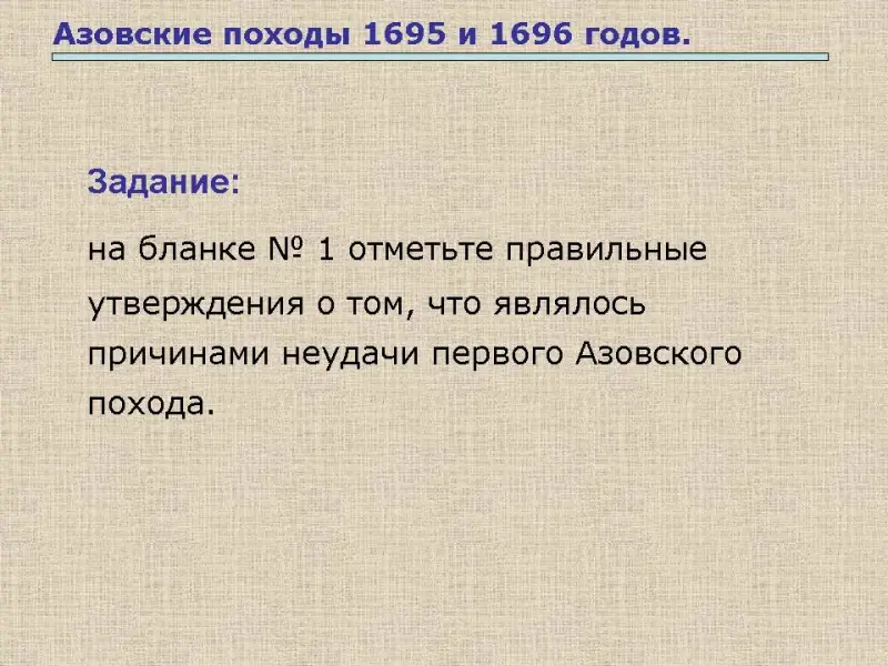 Учащиеся называют причины поражения в первом Азовском походе - это утверждения: