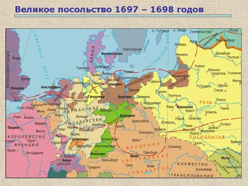 Великое посольство. Неудача первого азовского похода вскрыла многие недостатки. Победное завершение второго похода не решило всех стоявших перед Россией задач. И уже на следующий год Пётр готовит Великое посольство.