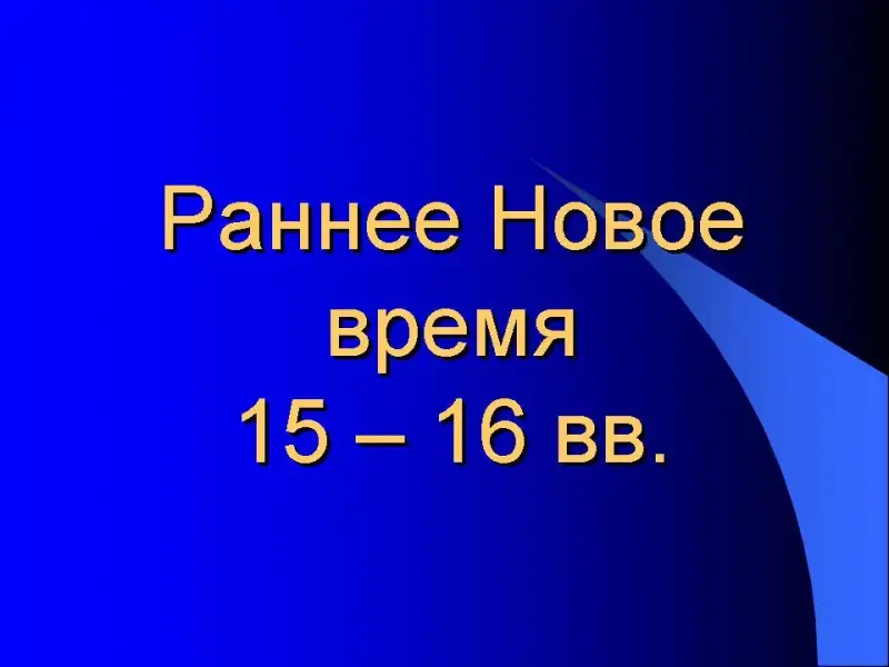 Раннее новое время - переходный период в истории, XV-XVI вв.